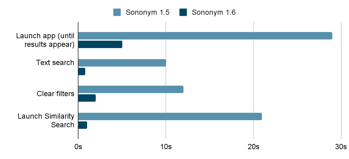 The application takes approximately one-fifth of the time to get ready, a regular search is 10x faster, and starting a similarity search is up to 20x faster. And the best part: the more samples you have, the more obvious this will become. Previously, it was the other way around: the performance would degrade until the point where the software would become practically useless.