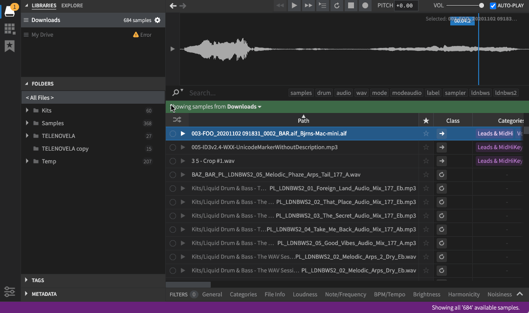 Playback will continue to the next file once the current one has stopped playing. Perfect for listening through a bunch of field recordings, or using Sononym as a music player.