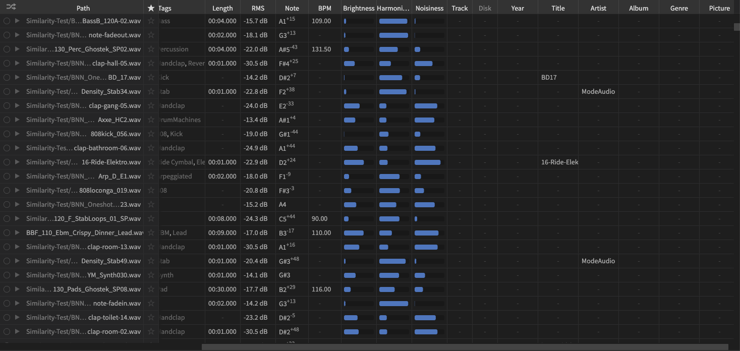 All columns are sortable: While running a similarity search, you have always been able to sort results by their total similarity as well as the individual aspects (Pitch, Timbre, and so on). But if you tried to search by any of the other regular columns, this hasn’t been possible until now.