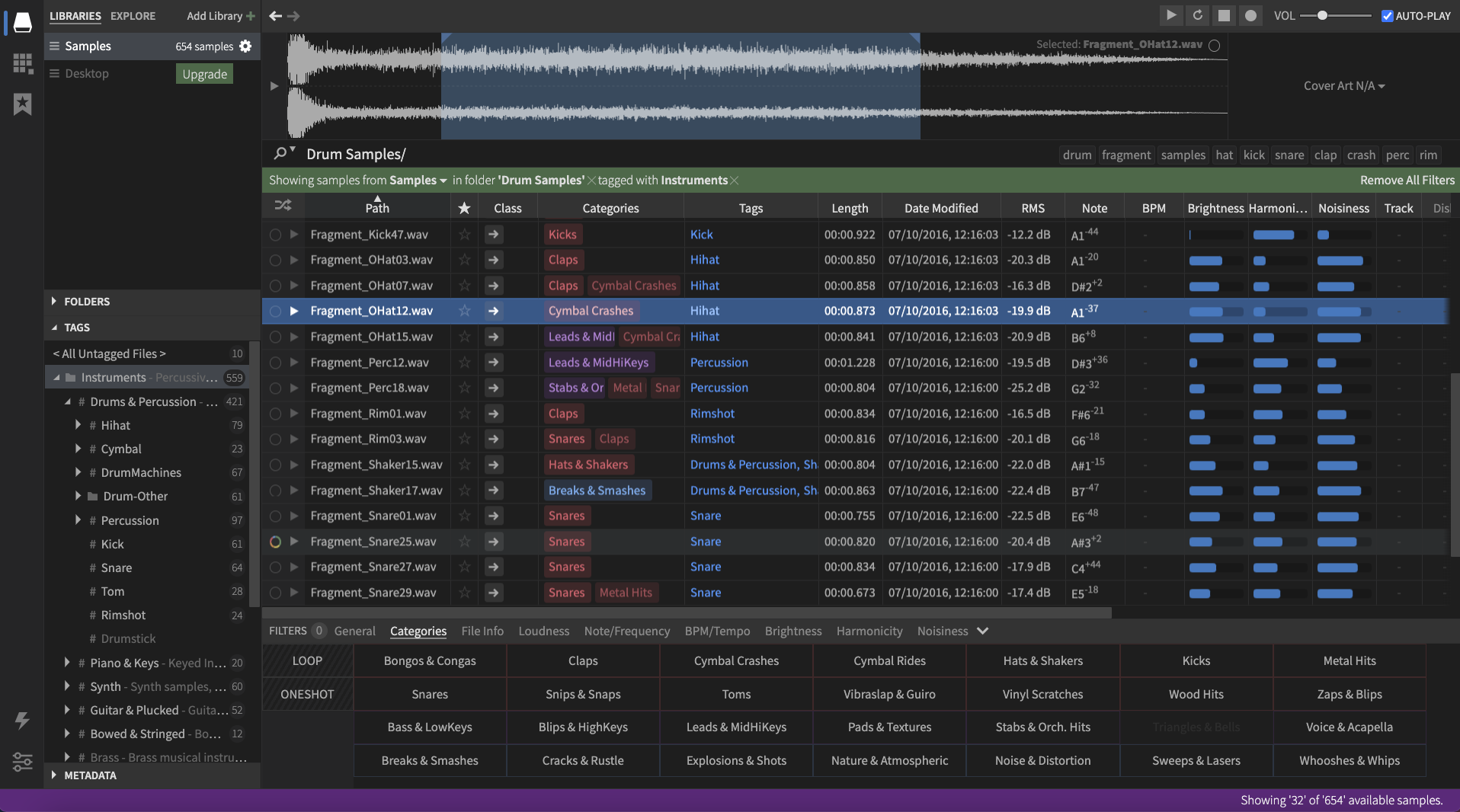 Sononym is now able to tag your files automatically, based on the information which is available in the filename/metadata. For example, if you have a file called “shotgun_reloading.wav”, then that file could automatically be associated with tags that are topically related, such as “Gun Handling” and “Shotgun”. And you can also tag files manually, and create your own custom tags as needed.